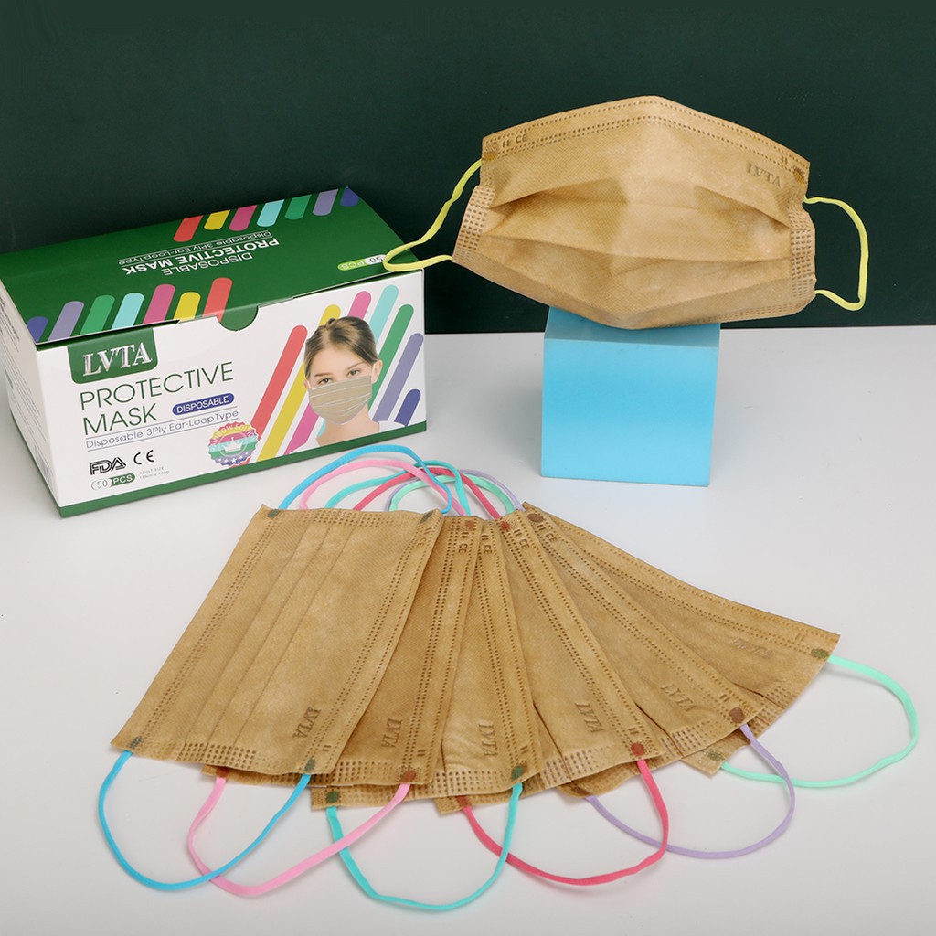LVTA Premium Coffee 3-Ply Disposable Face Mask Colored Earloop 50 pcs ...