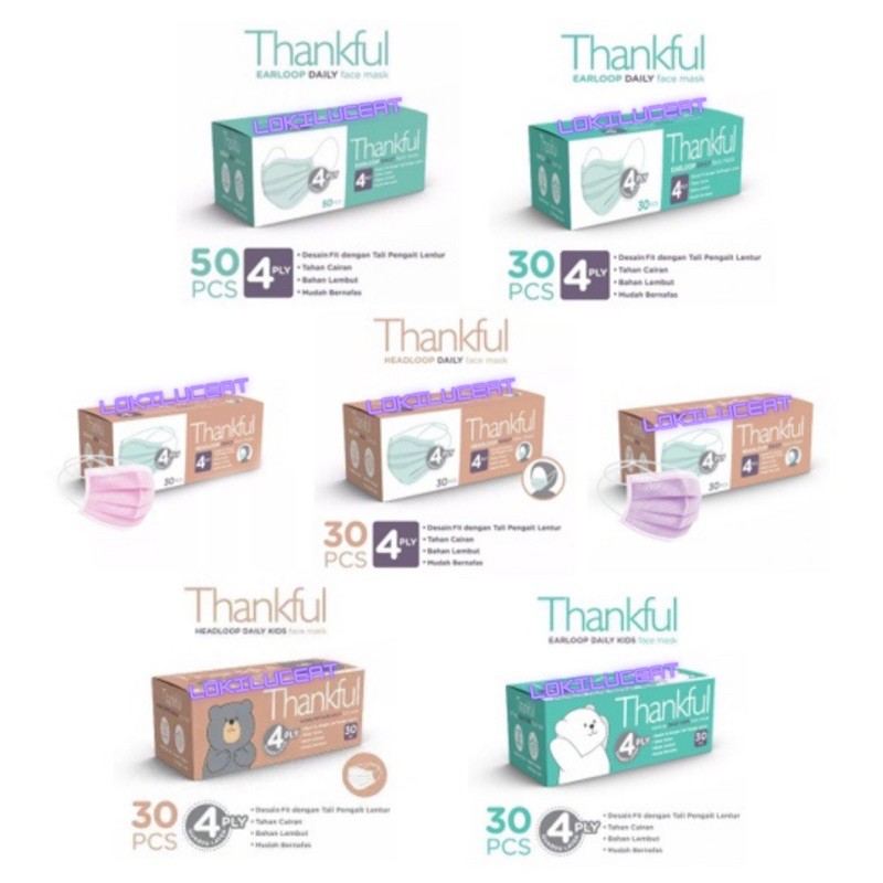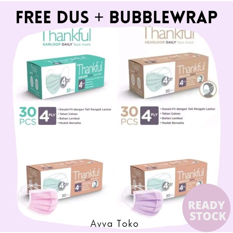 Jual Thankful Earloop dan Headloop Daily Face Mask 4ply tersedia masker ...