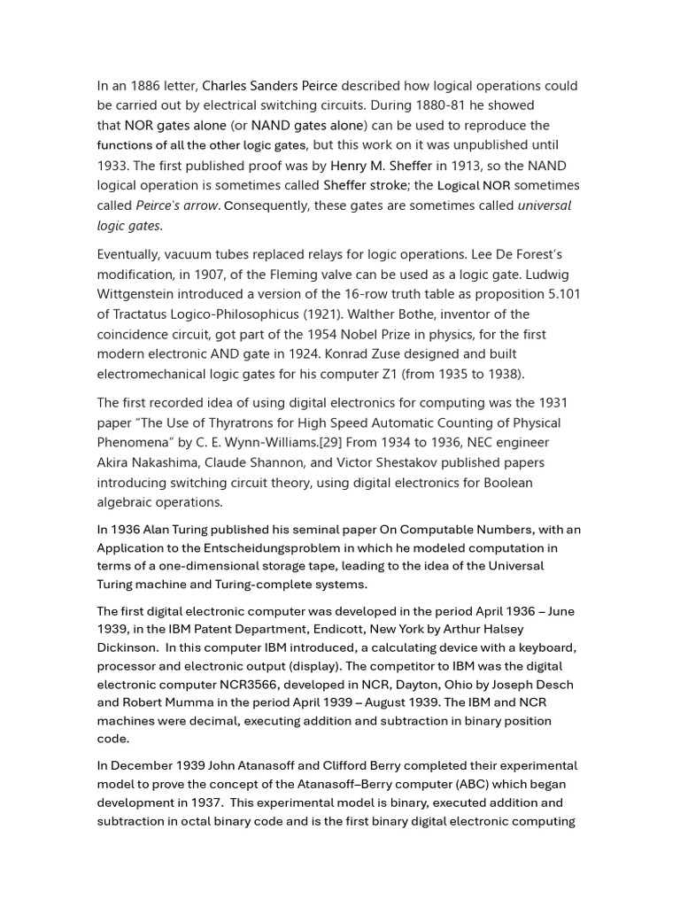 History of Logic Gates and Early Computers | PDF | Logic Gate | Computing