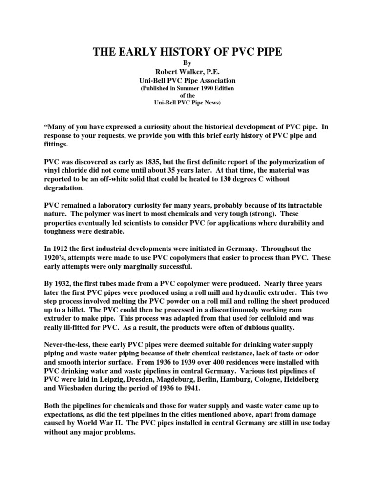 The Early History of PVC Pipe | PDF | Polyvinyl Chloride | Pipe (Fluid ...
