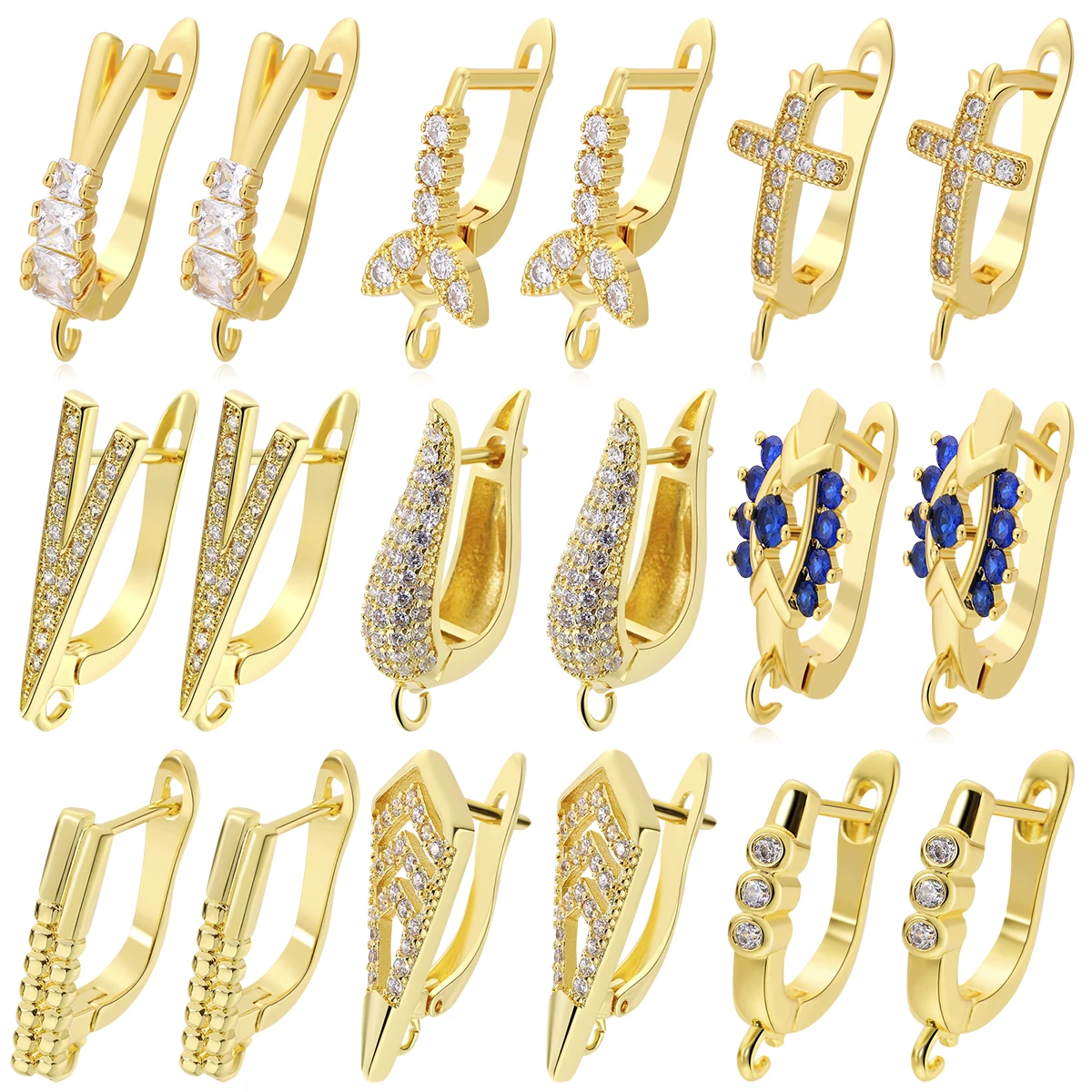 2 Pcs/Lot Gold Earring Hooks for Jewelry Making Zirconia Fastener ...