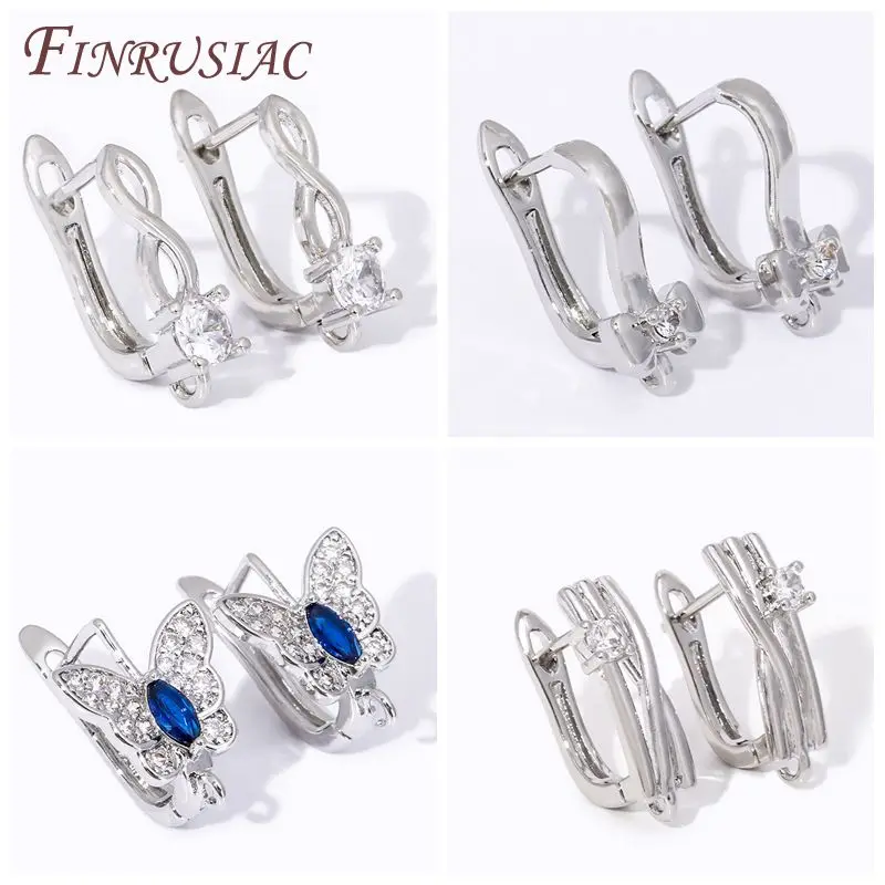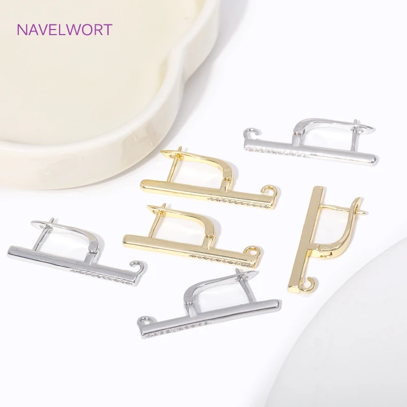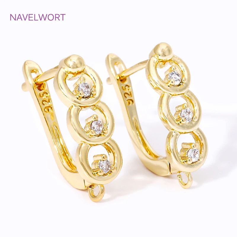 Setting Zircon DIY Earring Fastener Clasps Round Hoop Earring Hooks 18K ...