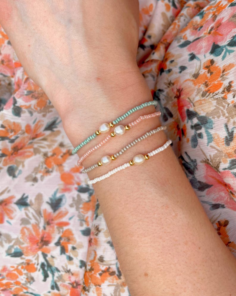 Pastel Beaded Stretchy Bracelet Stack 18k Gold Filled Pearl Bracelet ...