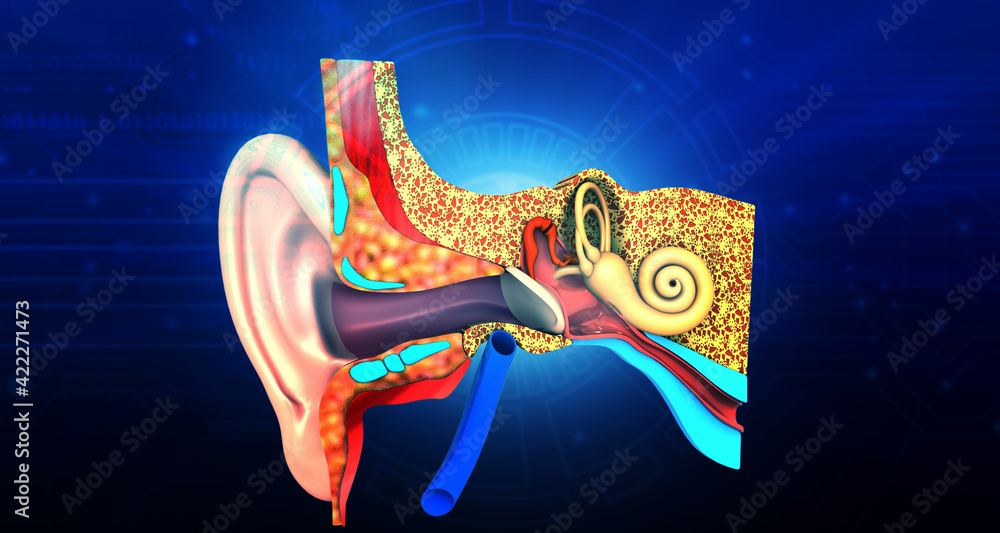 Human ear anatomy on blue background. 3d illustration. Stock ...