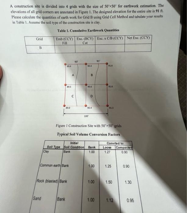 Solved Earthwork Problem (30 pts) Use the grid method to | Chegg.com