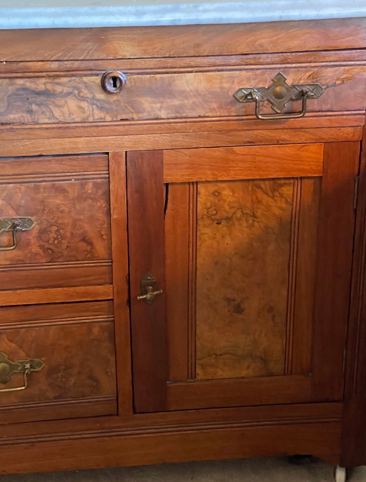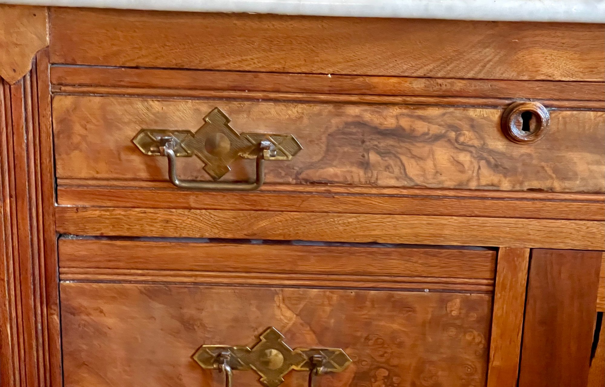 Antique East Lake Commode With Marble Top And Burl Walnut Front Knapp ...