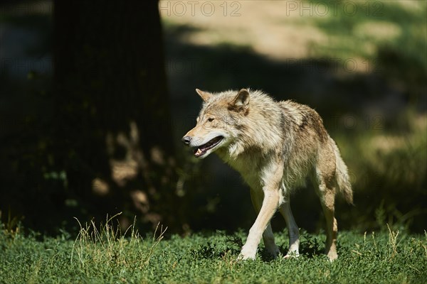 Eastern wolf (Canis lupus lycaon) staying in a forest, captive; Baden ...