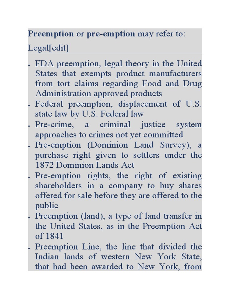 Preemption Act - Premetion act - Pre-emption act 1991 Q 01: Define Pre ...