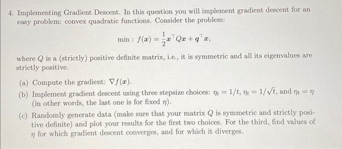 4. Implementing Gradient Descent. In this question | Chegg.com