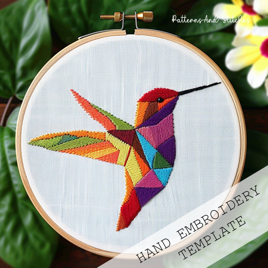 Geometric Hummingbird Embroidery Pattern: Beginner DIY Hoop Art, Gift ...