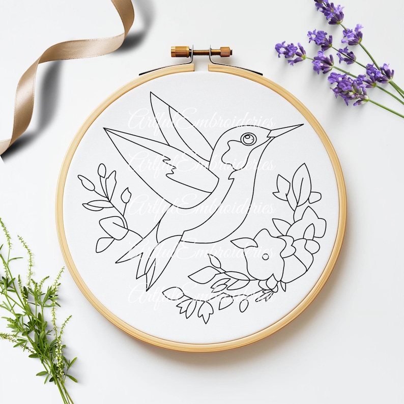 Hand Embroidery Pattern, Hummingbird, Pdf Pattern, Beginner Thread ...