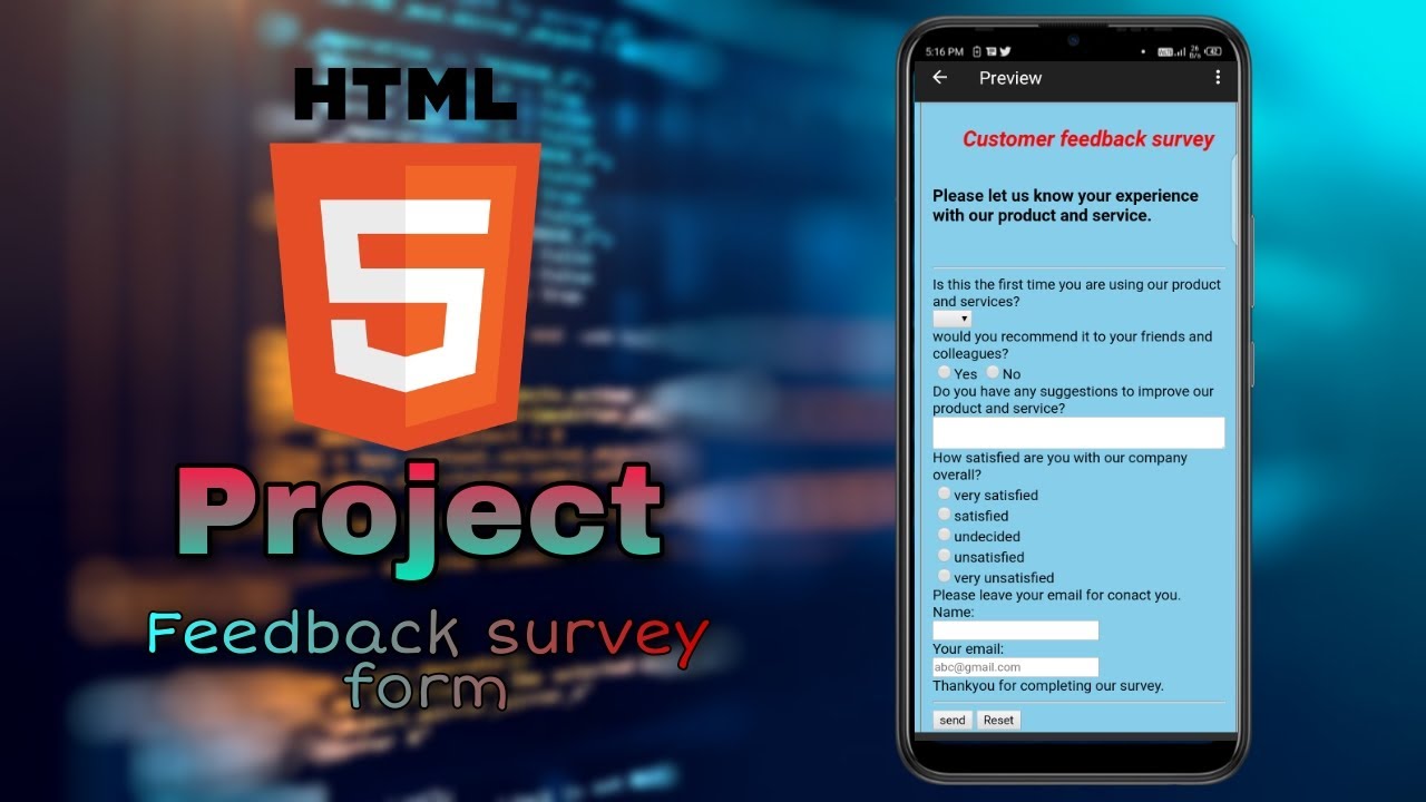 Customer feedback survey form (html coding in mobile) - YouTube