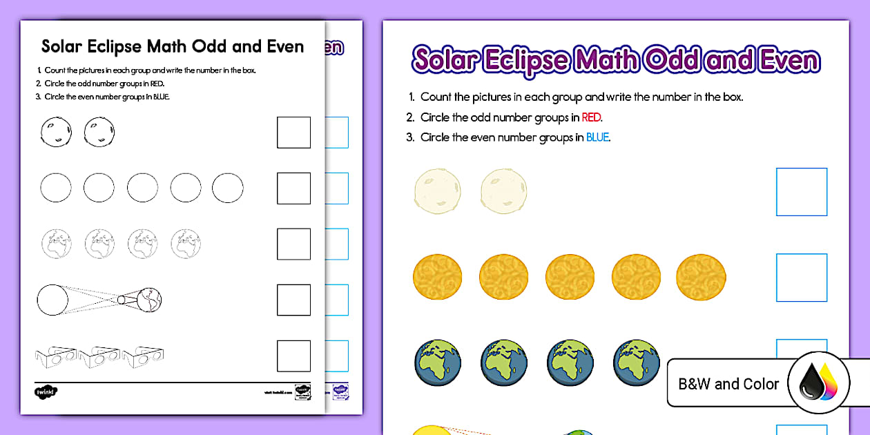 Solar Eclipse Math Odd and Even Worksheet for K-2nd Grade