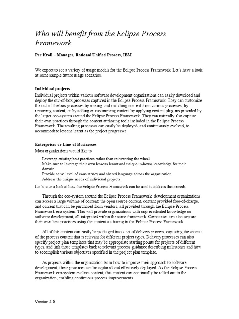 Who will benefit from Eclipse Process Framework | PDF | Eclipse ...