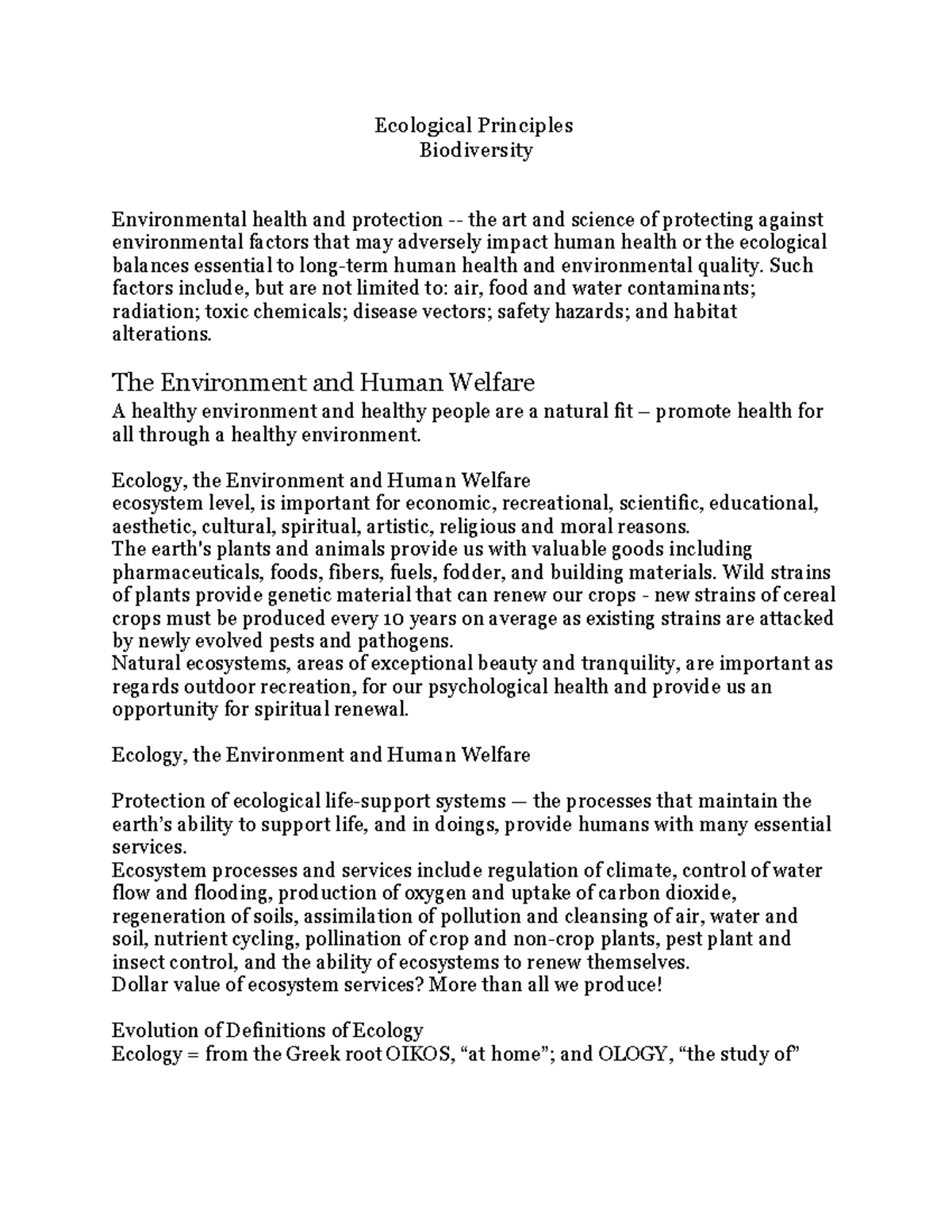 Ecological Principles Lecture - Ecological Principles Biodiversity ...
