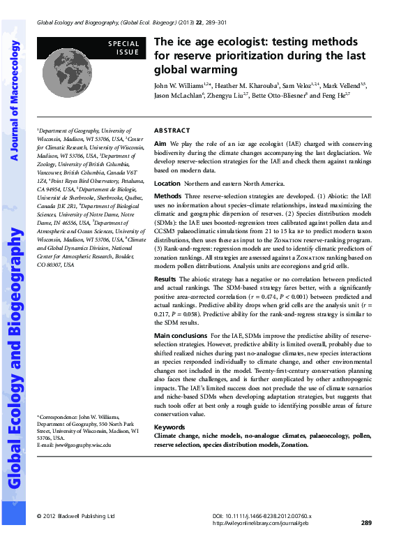 (PDF) The ice age ecologist: testing methods for reserve prioritization ...