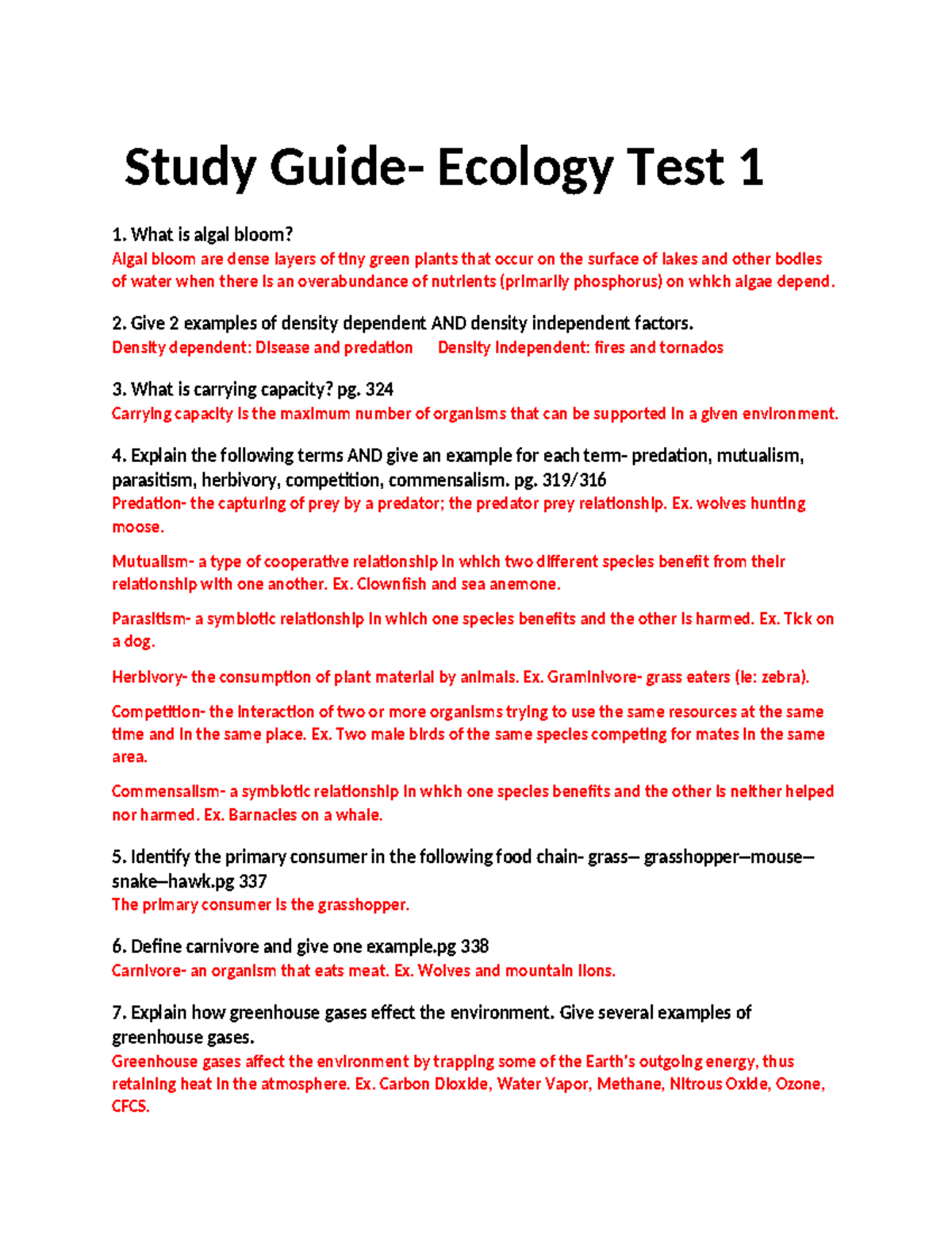 Study guide for ecology test 1: key concepts and examples - Studocu