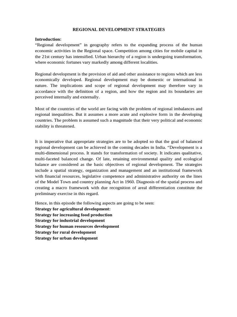 Regional Development Strategies | PDF | Agriculture | Economies