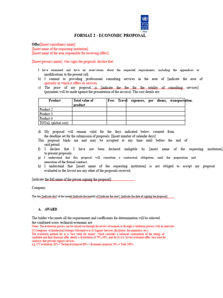 Format of The Economic Proposal | PDF | Economies | Business