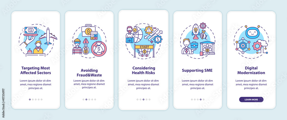 Economic systems blue onboarding mobile app screen set. Market economy ...
