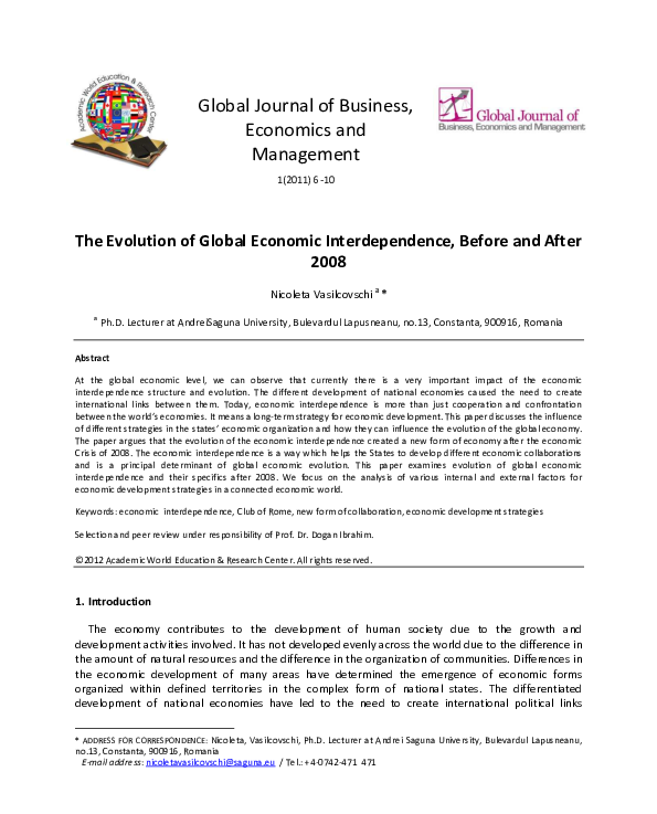 (PDF) The Evolution of Global Economic Interdependence, Before and ...