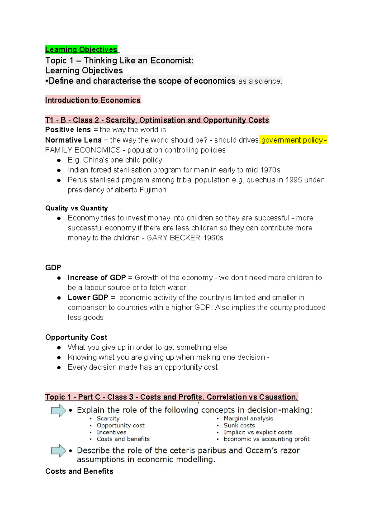Economics Key Terms + Examples + equations - Learning Objectives Topic ...