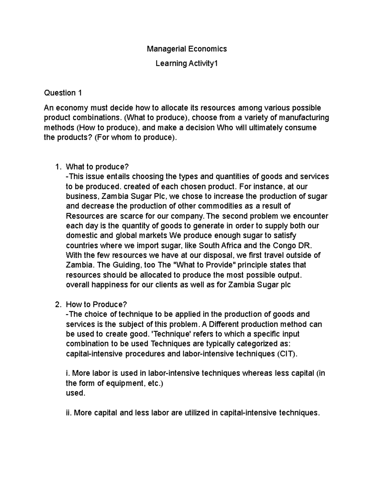 Managerial Economics Learning Activity 1 Economics - Managerial ...