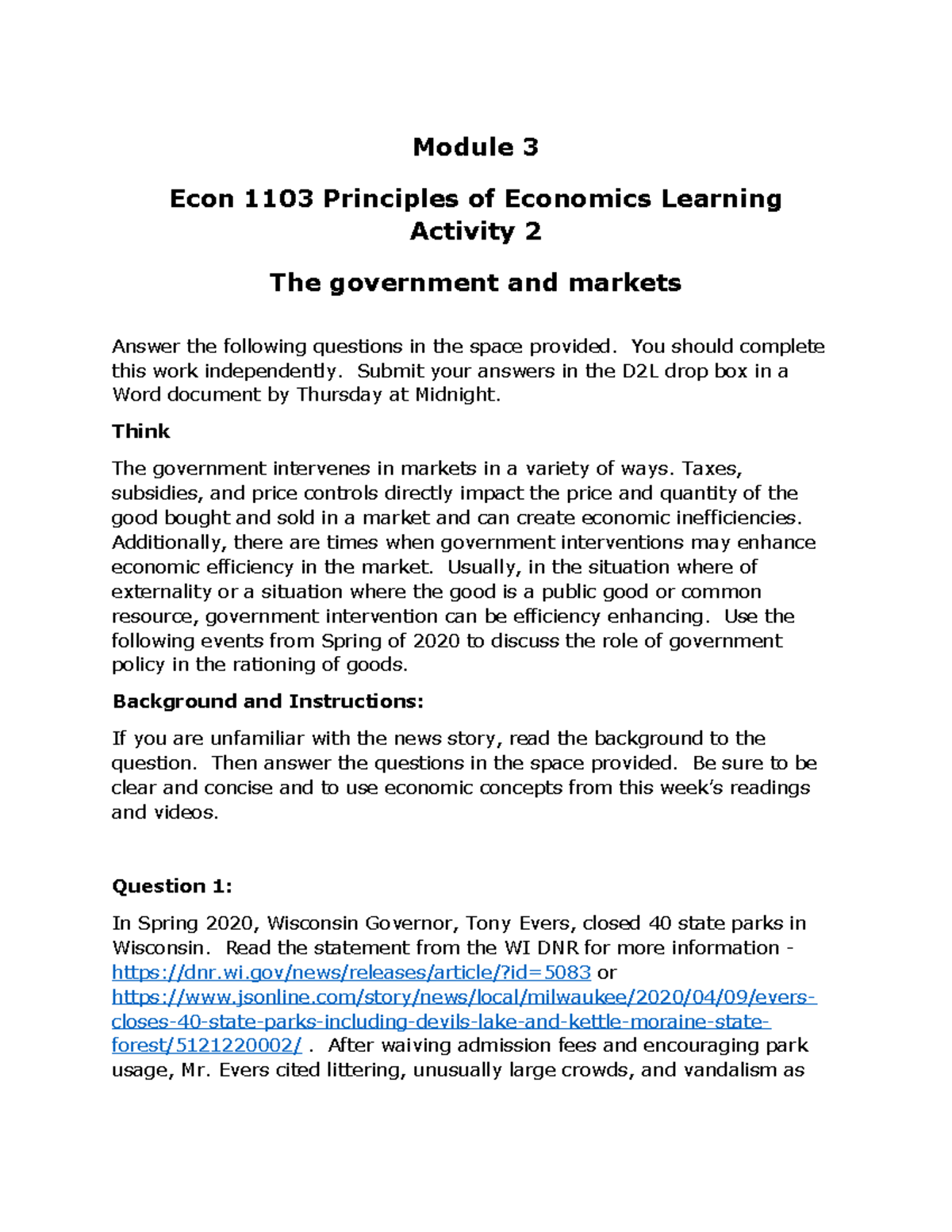 Module 3 Econ 1103 Principles of Economics Learning Activity 2: Gov't ...