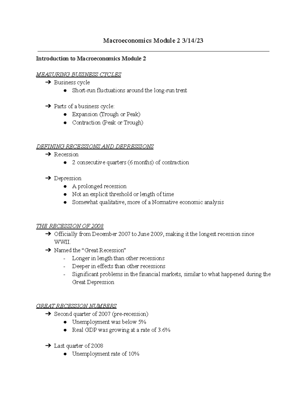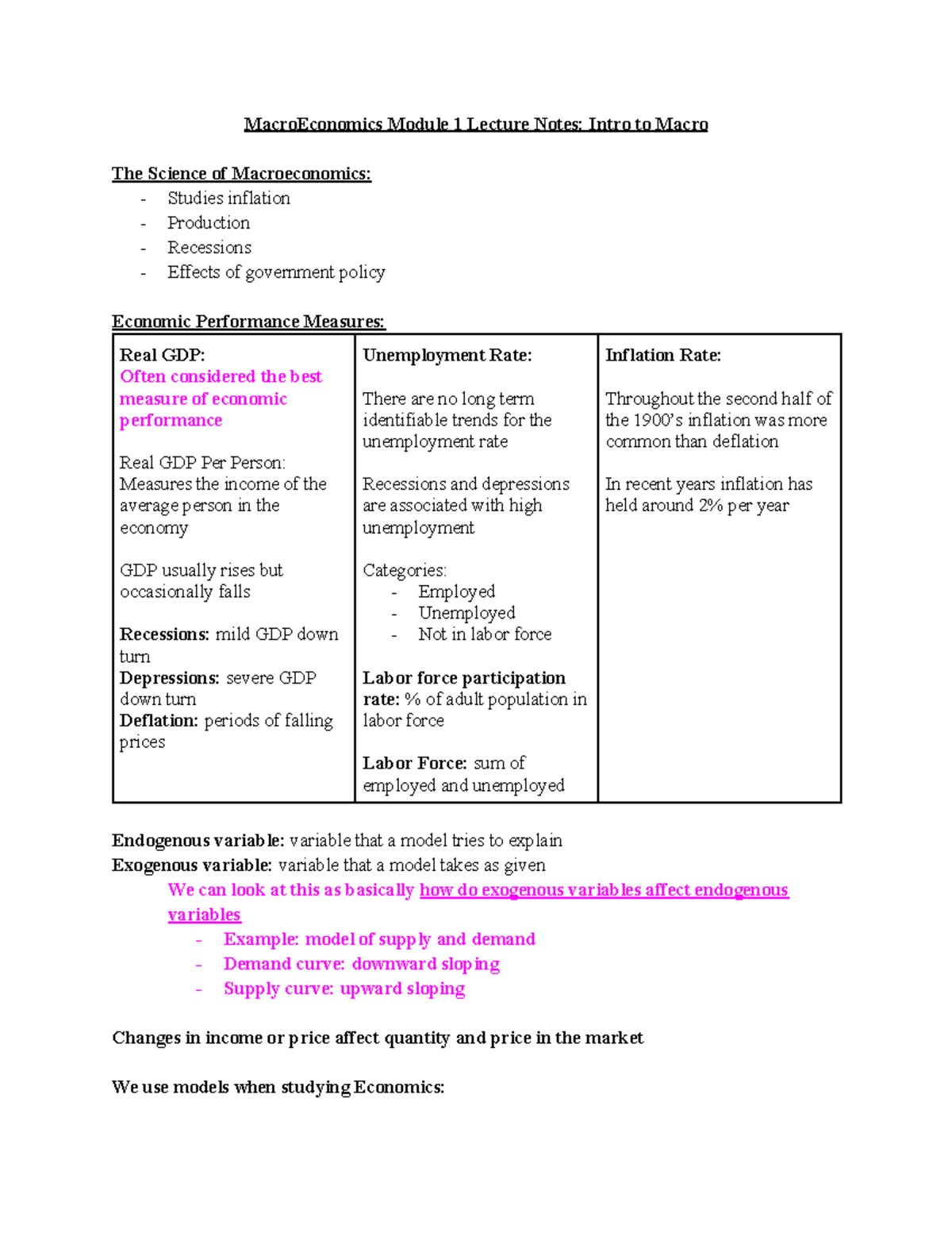 Macro Economics Module 1 Lecture Notes Intro to Macro - Studocu