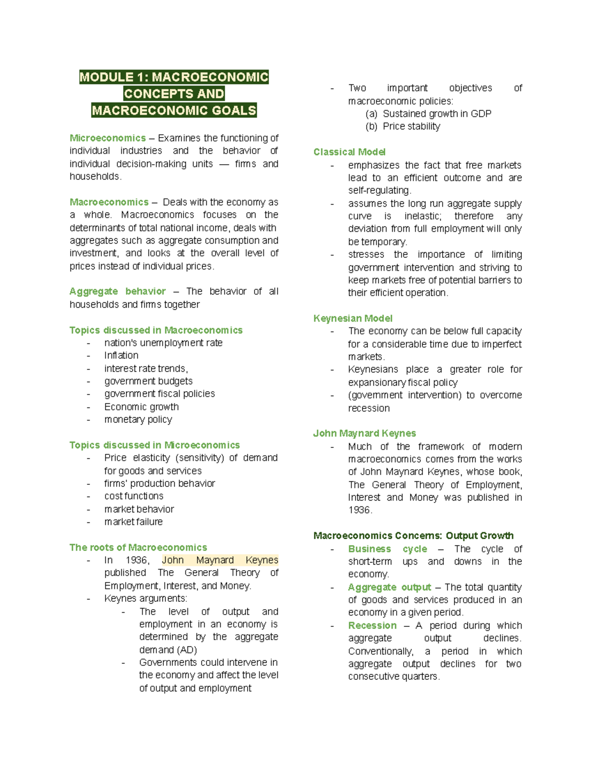 Basic Macroeconomics II Module: Concepts & Key Economic Theories - Studocu