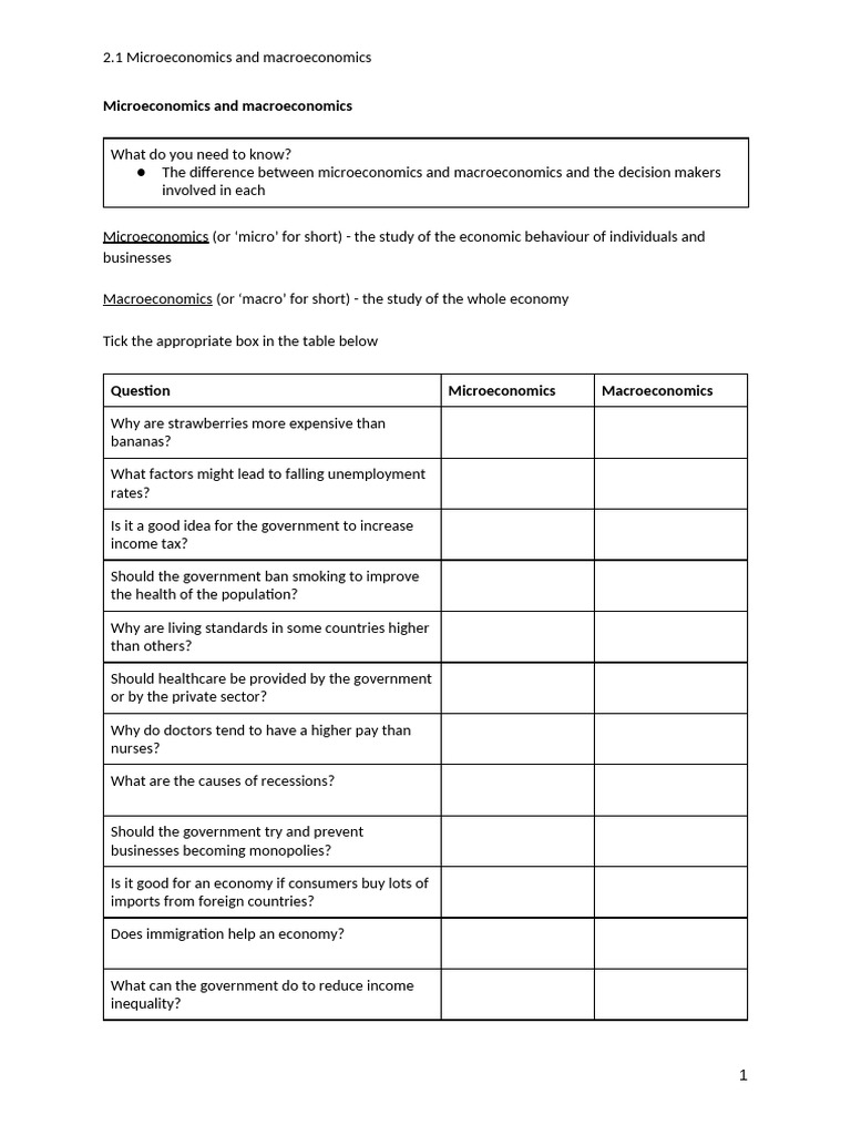 UNIT 1 Macro and Micro 1 | PDF | Economics | Macroeconomics