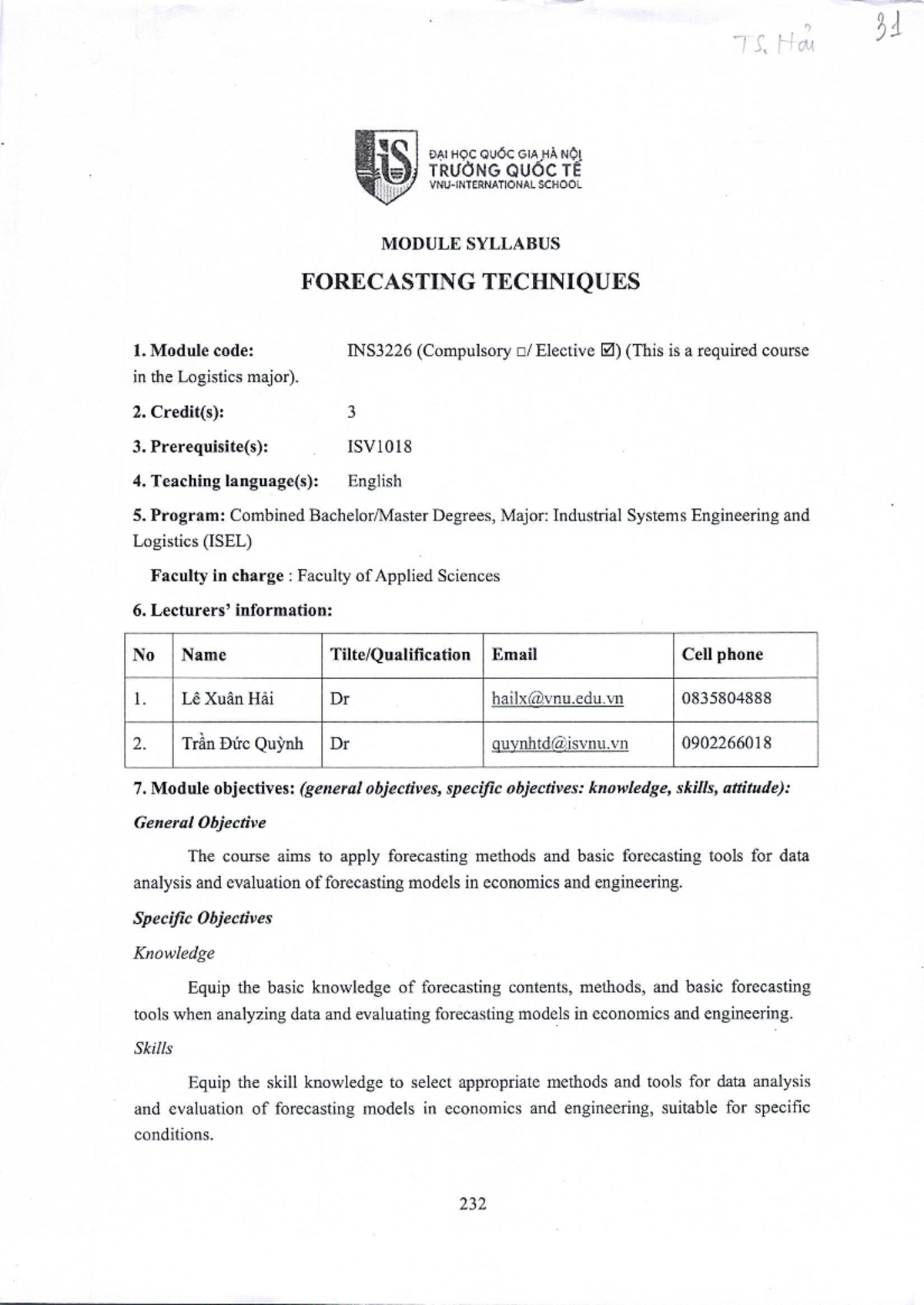 INS3226 Module Syllabus: Forecasting Techniques Overview - Studocu