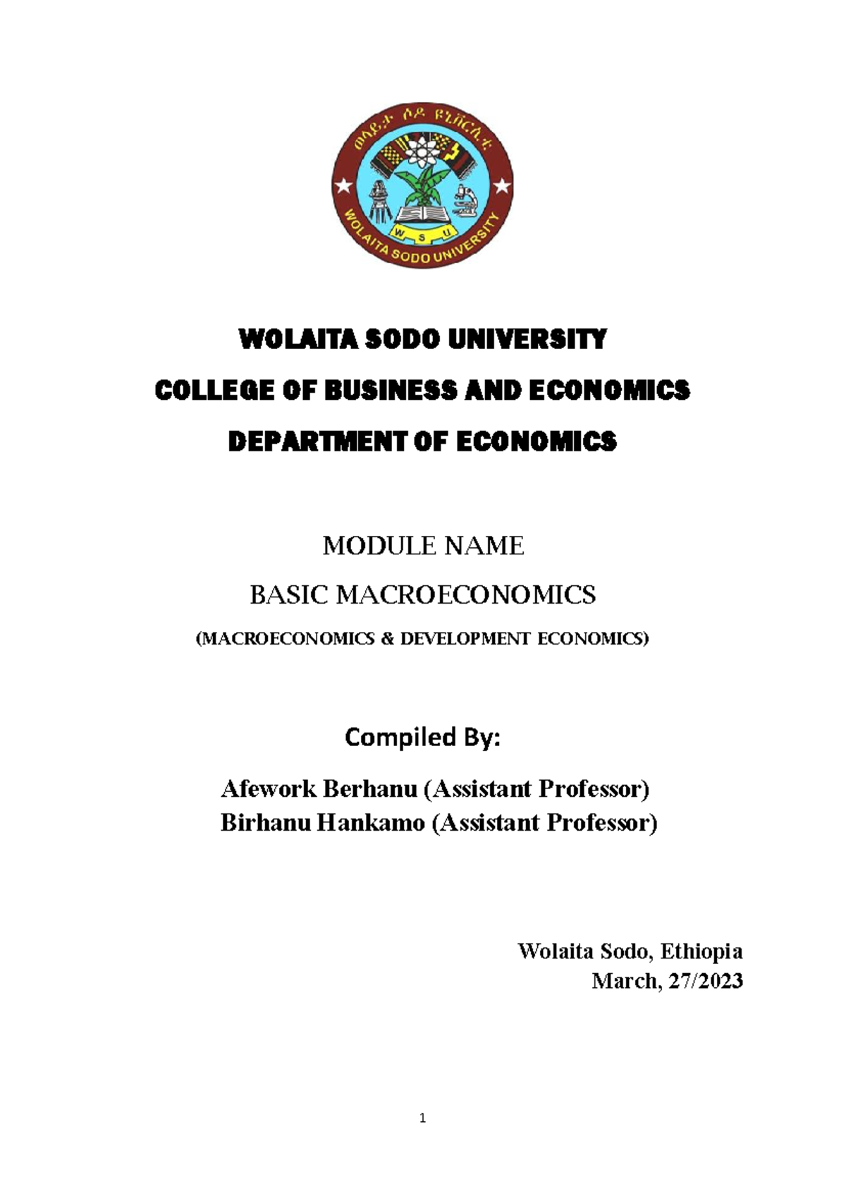 ECONOMICS module for Freshman 1st Semester Students | PDF