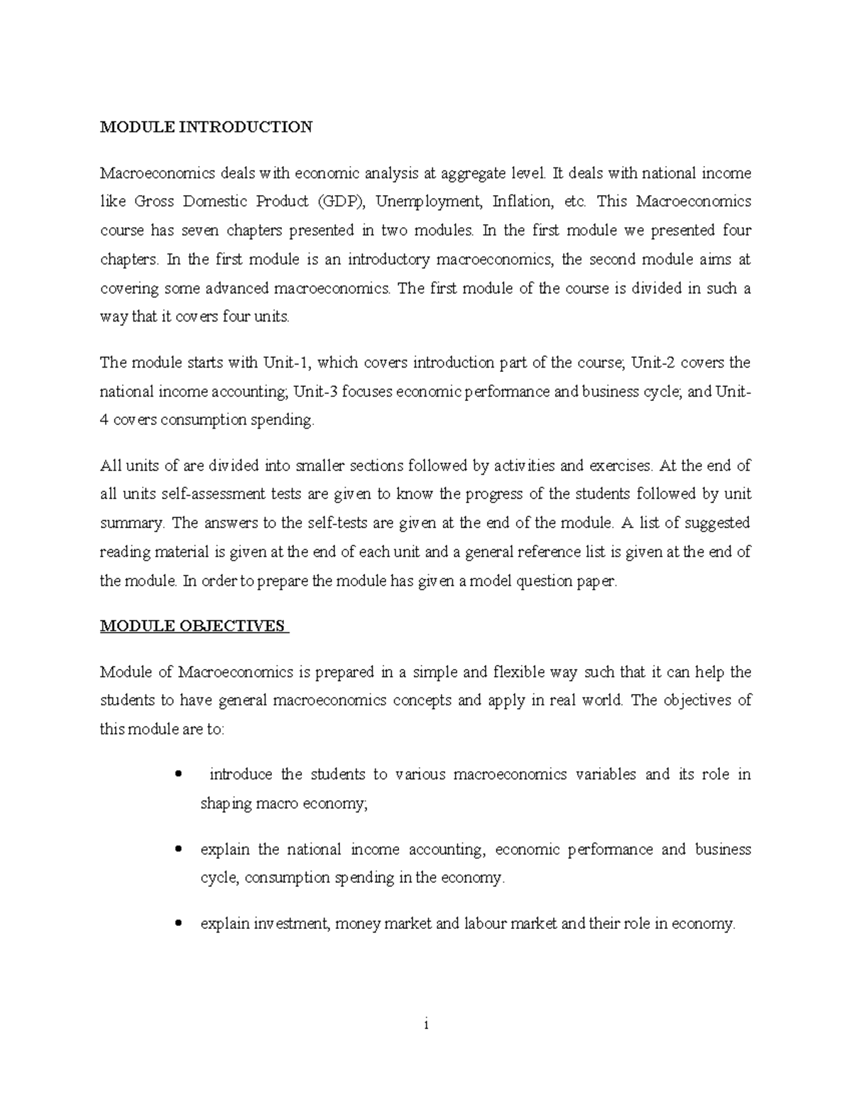 Module I - Macroeconomics - MODULE INTRODUCTION Macroeconomics deals ...