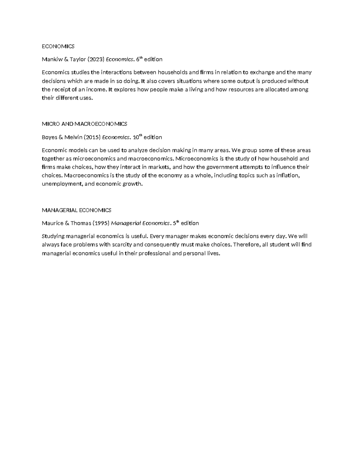 ECONOMICS module