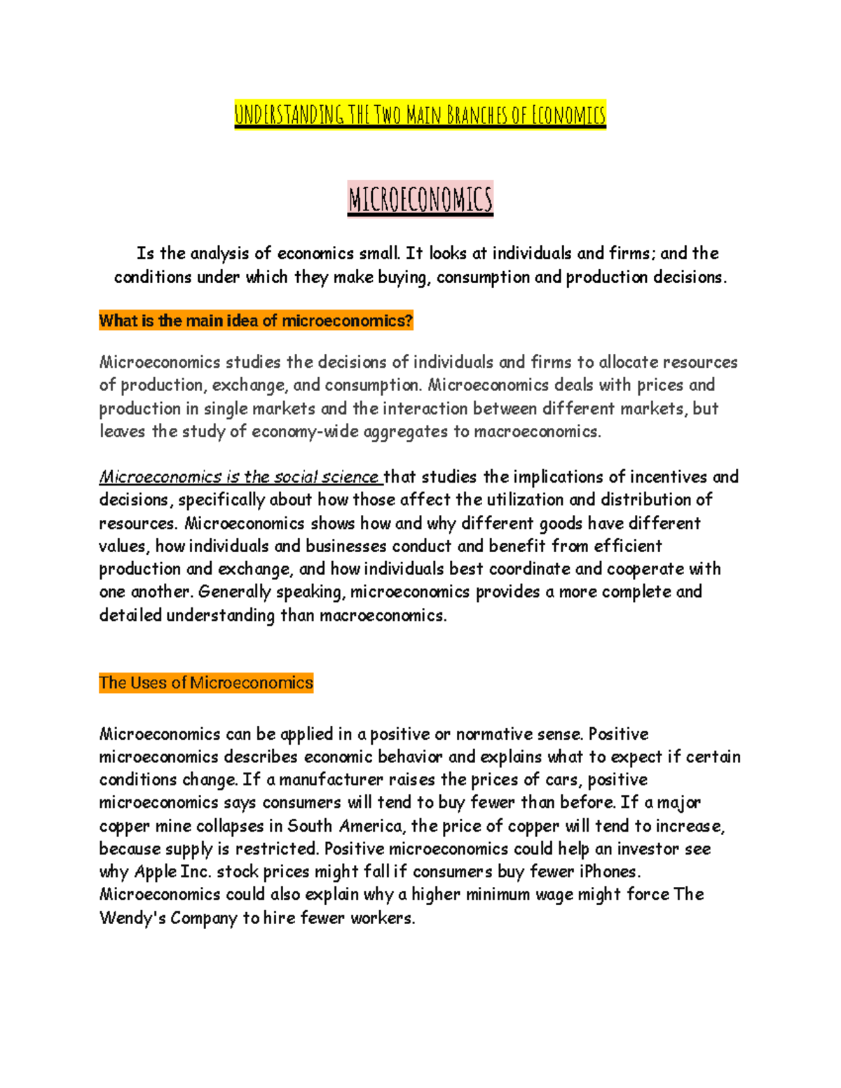 Understanding the Two Main Branches of Economics: Micro & Macro - Studocu