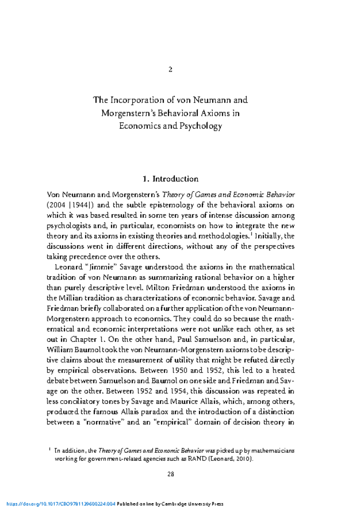 The Incorporation of von Neumann and Behavioral Axioms in Economics and ...