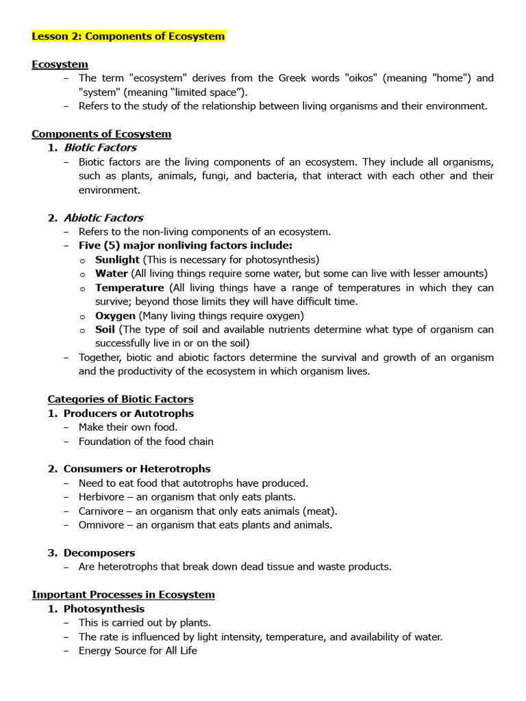 Lesson 2 Components of Ecosystem Handout | PDF | Ecosystem | Plants