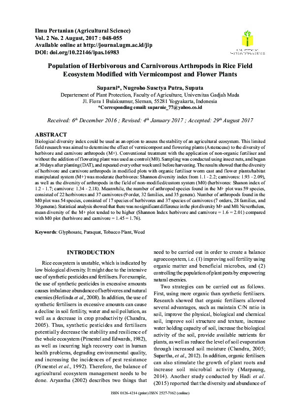 (PDF) Population of Herbivorous and Carnivorous Arthropods in Rice ...