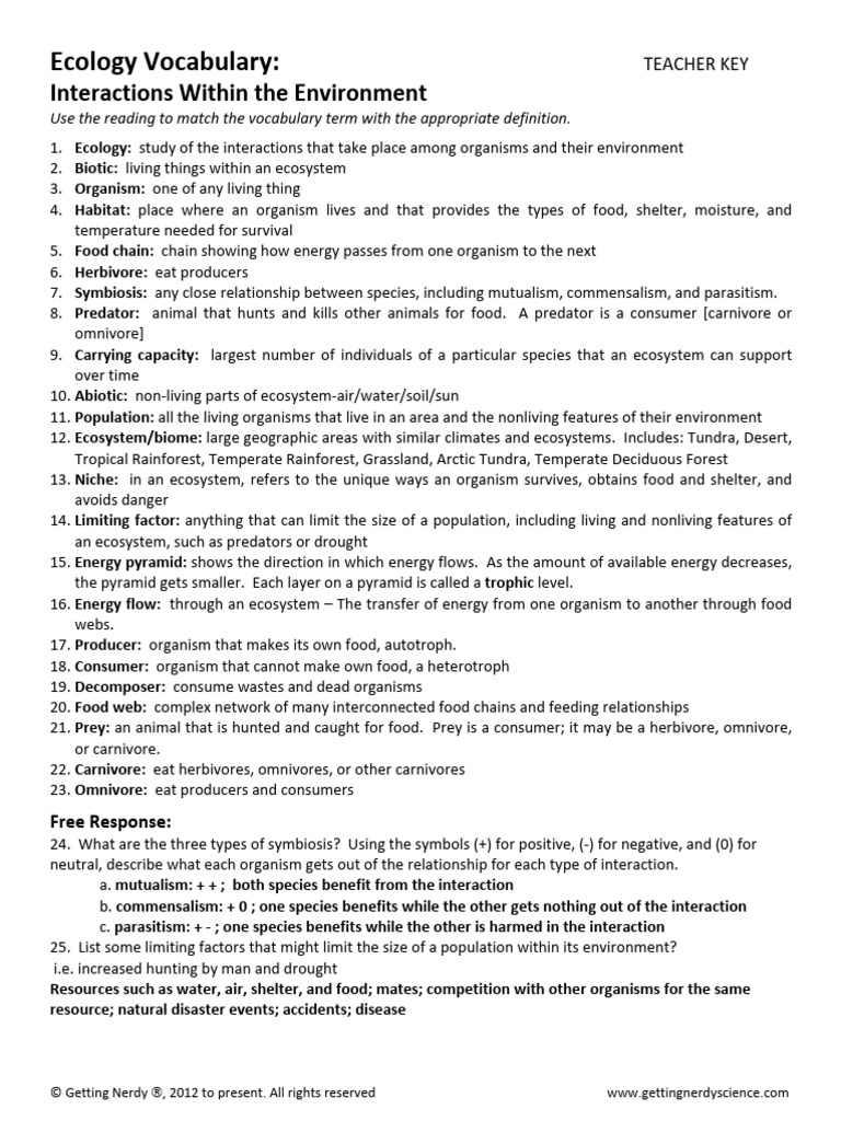 1 Ecology Vocabulary Modified Key | PDF | Ecosystem | Ecology