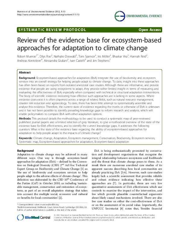 (PDF) Review of the evidence base for ecosystem-based approaches for ...