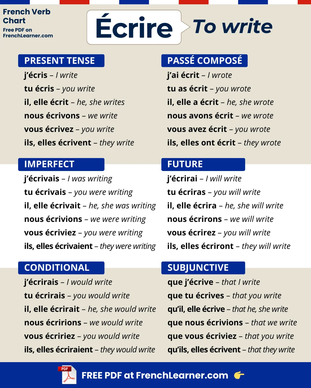 French Verb Écrire Conjugation, Meaning, Translation, Examples | by ...
