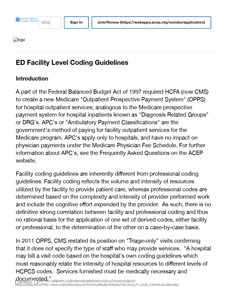 ED Facility Level Coding Guidelines _ ACEP | PDF | Emergency Department ...