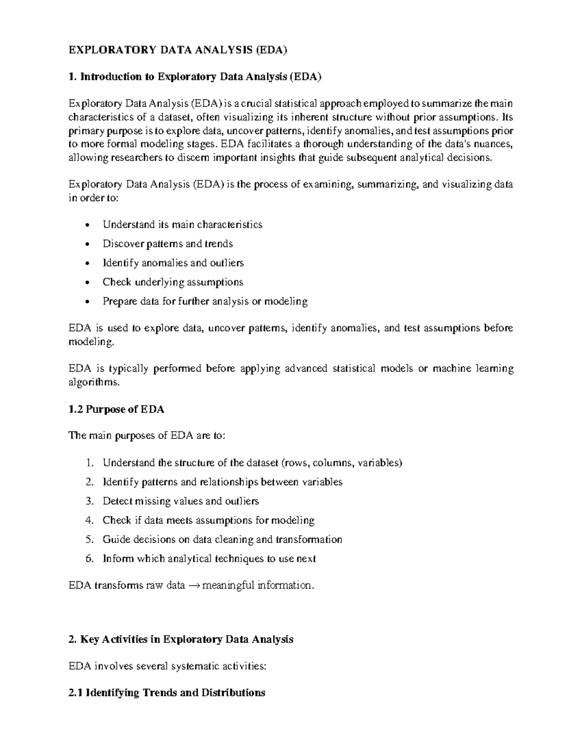 Exploratory Data Analysis (EDA) Overview and Key Techniques - Studocu