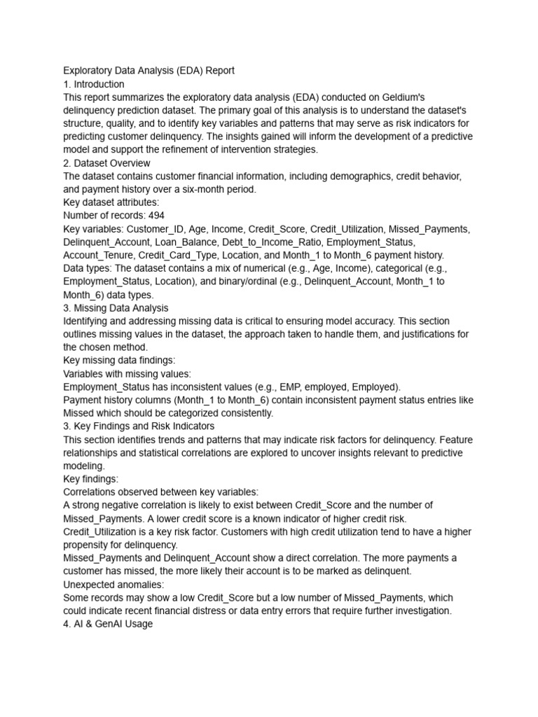 EDA Summary Report Template: Delinquency Prediction Analysis - Studocu