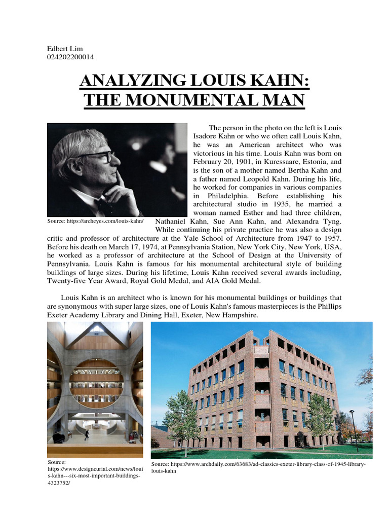 Analyzing Louis Kahn-The Monumental Man-Edbert Lim | PDF