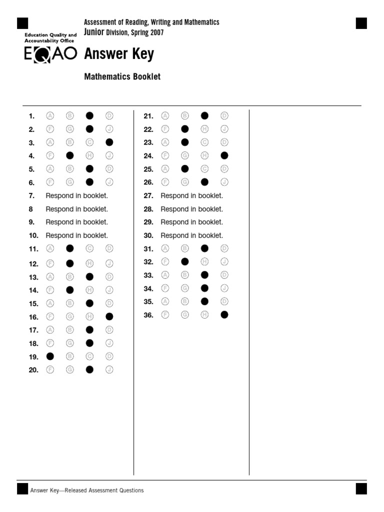Math Answer Key 2007 | PDF