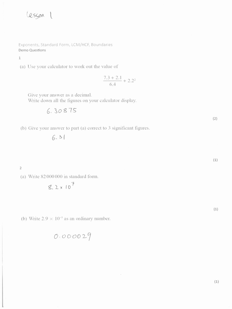 Math - Lesson 1 in Class Answer Key - Filled | PDF