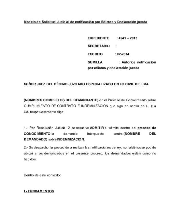 (DOC) Modelo de Solicitud Judicial de Notificacion Pro Edictos y ...