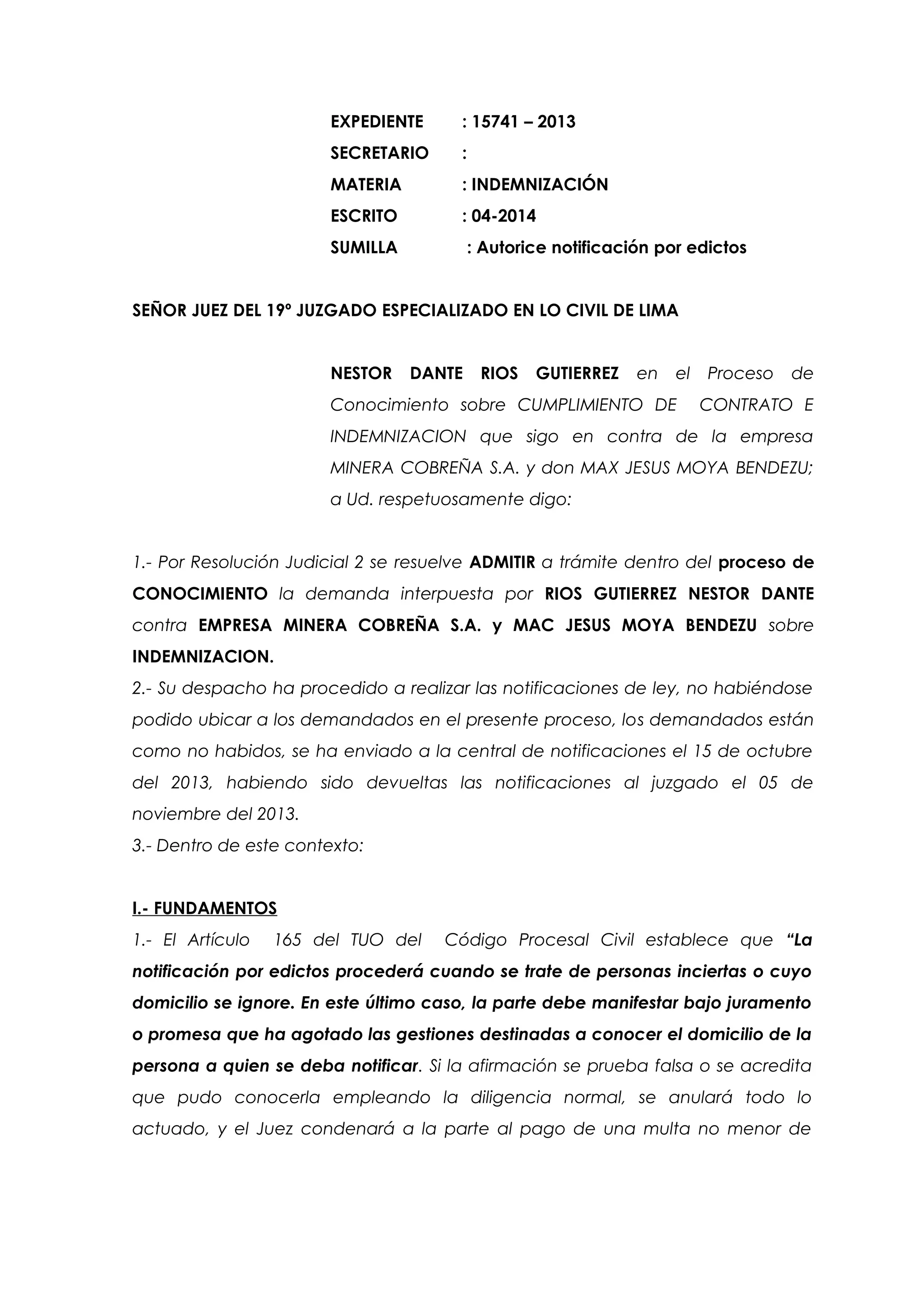 Modelo Escrito Solicitando Publicacion Edictos